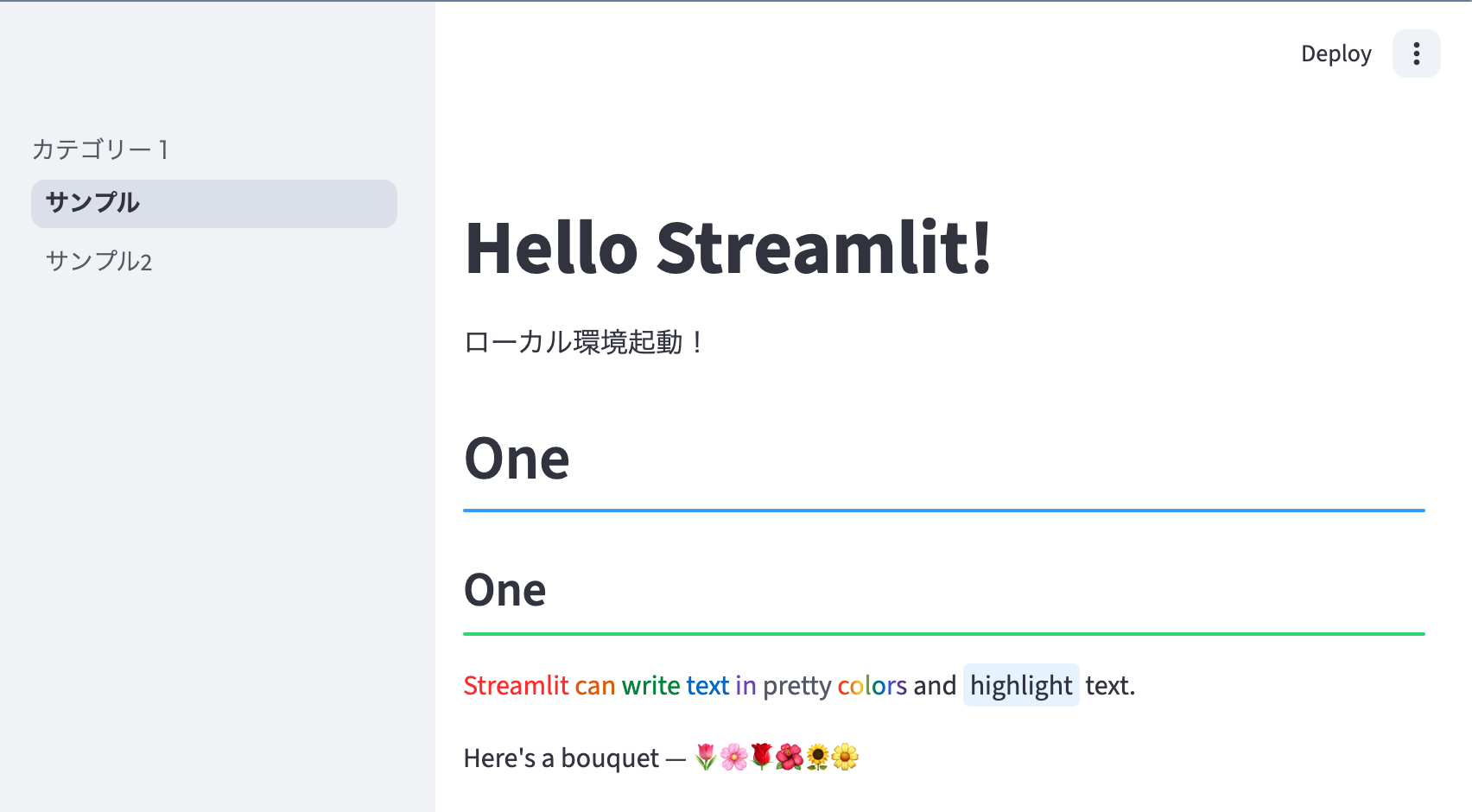 streamlitでは、簡単に左カラムに共通のナビゲーションを作るメソッドが用意されている。