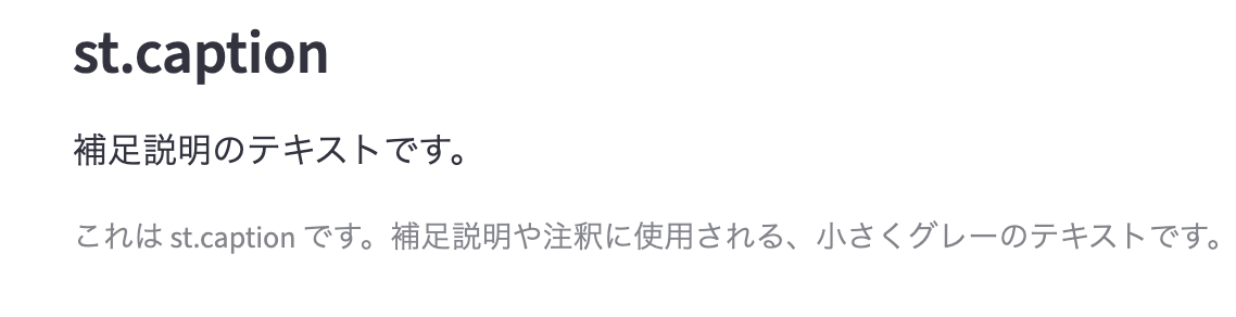 st.caption("これは st.caption です。補足説明や注釈に使用される、小さくグレーのテキストです。")